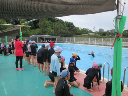 6/17 プール開き 3年生 公開日 2024/06/18 更新日 2024/06/18 各学年から 3年生の体育、プール開きです。泳力測定をしていました。一生懸命泳ぐ仲間を応援しながら見ていました。 3年