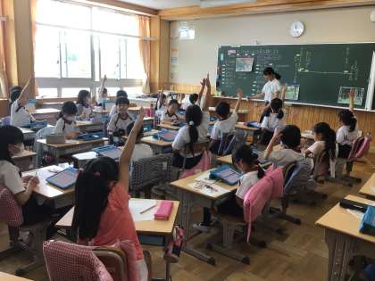 3年生の総合的な学習です。まごころの森と、奥の森を比べて気づいたことを発表しました。人の手の入った明るいまごころの森の良さに、比べることでたくさん気づきました。