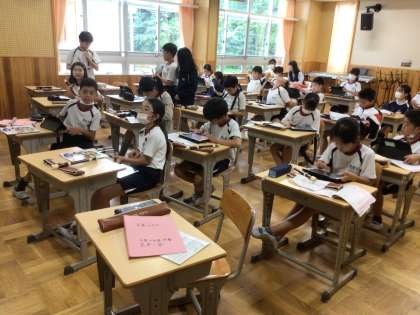 6/28 リコーダー 5年生 公開日 2024/06/28 更新日 2024/06/28 各学年から 5年生の音楽の授業です。練習してきたリコーダーのテストでした。テストを受ける以外は、階名よみやタブレットの音楽クイズ等、静かに自習をしていました。 5年