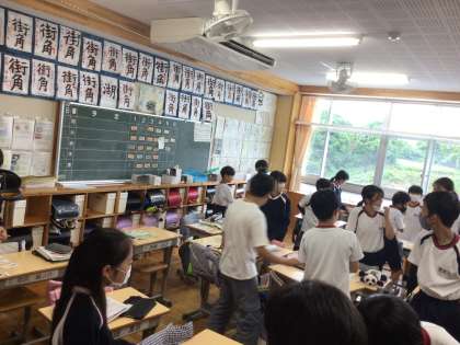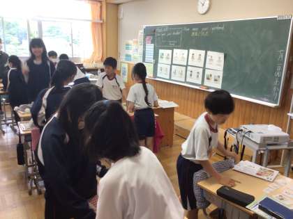 7/1 週末にしたこと 6年生 公開日 2024/07/02 更新日 2024/07/02 各学年から 6年生の外国語の授業です。週末にしたことを尋ねる言い方を学びました。会話に使える動詞をカードにして、発音を聞いてカードを取るゲームもしていました。その後、「朝食は何を食べたの」と聞いて答える会話をペアで行いました。 6年