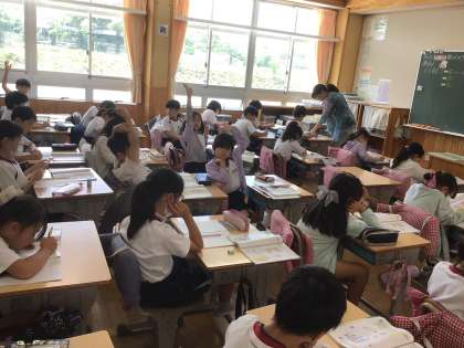 3年生の算数の授業です。一目盛りをいくつにしたらよいかを考えて表を作ることを学びました。