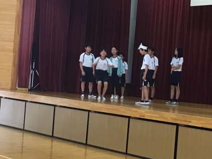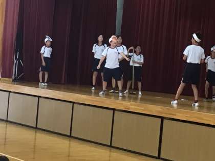 児童集会を行いました。企画委員による学校の紹介の劇を見て、みんなで遊べるゲームをして楽しみました。