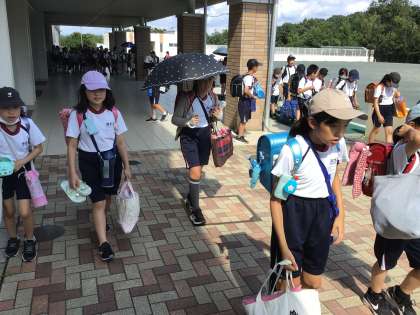 7/19 下校 公開日 2024/07/19 更新日 2024/07/19 お知らせ とても暑いので、外にいる時間を少しでも減らすため、昨日、今日と学年下校(雨降り下校のような形)にしています。今日は教員による下校指導も行いました。 明日から夏休み。「元気でね。」「よい夏休みを。」 みんな元気で、楽しい夏休みになりますように。9月に会えるのを楽しみにしています。