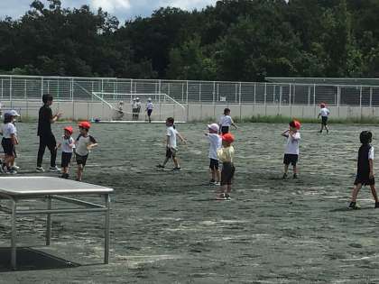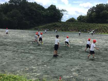 久しぶりに学校の運動場で遊ぶ子どもたち。WBGTを測ったり、水分補給をするよう声をかけたりして、夏休み前と変わらず熱中症対策をしています。