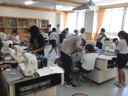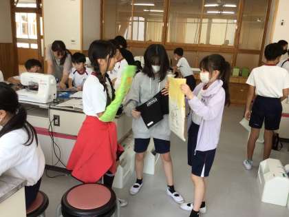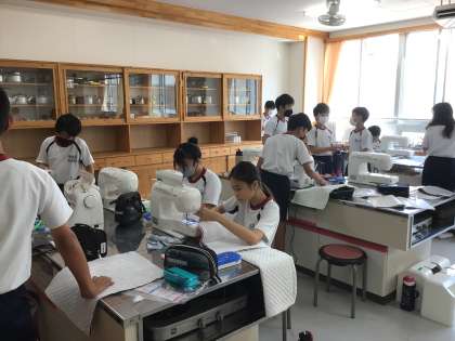 6年生の家庭科の授業です。ミシンを使って、袋に縫っていました。出来上がったものは、修学旅行に持っていきます。楽しみですね。