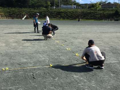 9/9 運動会練習の準備 公開日 2024/09/11 更新日 2024/09/11 お知らせ 子どもの下校後、運動会練習に向けて職員が作業をしました。メジャーで測りながら、ポイントとなるところに色テープを付けたペグを打ちました。