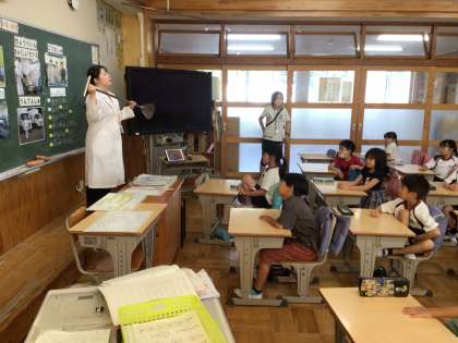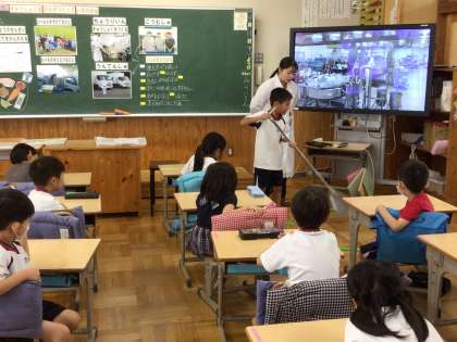 9/11 給食を作る人 1年生 公開日 2024/09/11 更新日 2024/09/11 各学年から 栄養教諭による1年生の食育です。 給食ができるまでに、どんな人がどういう思いで、どんなことをしているのかを学びました。給食センターで使われる、鍋をかき混ぜる道具の大きさにびっくり。かき混ぜる体験をした子が、「これを30分も混ぜたら、汗をかくよ。」と話していました。 1年