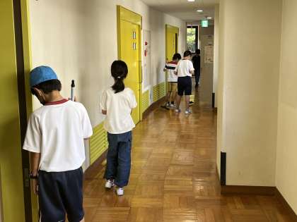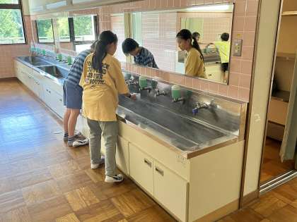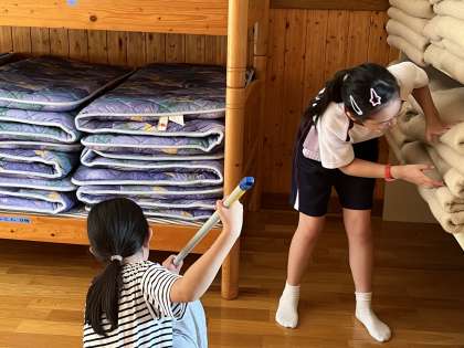 9/13 キャンプ 清掃 公開日 2024/09/13 更新日 2024/09/13 各学年から 自然の家の部屋、洗面所、階段等の掃除をしています。自分でやることを見つけ、てきぱき掃除をしています。出来たところから点検を受けます。 5年 行事