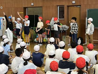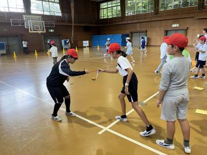 9/13 キャンプ 学年レク大会 公開日 2024/09/13 更新日 2024/09/13 各学年から アリーナで、学年レク大会をしています。実行委員会の司会、説明のもと、おたまリレーやフラフープくぐり等で楽しんでいます。仲間を応援したり、結果発表で「やったー。」と声をあげたり。盛り上がっています。 5年 行事