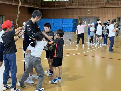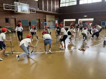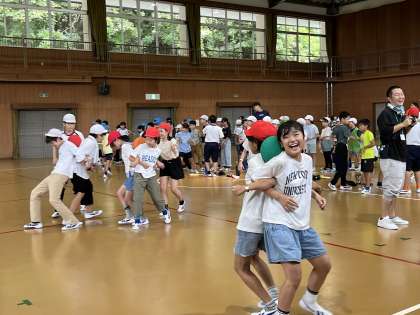 9/13 キャンプ 学年レク大会 公開日 2024/09/13 更新日 2024/09/13 各学年から 新聞紙を丸めた棒を倒れないように引き継ぐゲーム、ホール運びリレー、洗濯バサミをたくさんつける競争をしました。 5年 行事