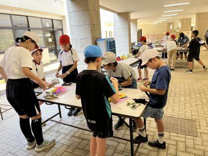 9/13 キャンプ クラフト 公開日 2024/09/13 更新日 2024/09/13 各学年から 最後の活動、クラフトです。写真フレームを作ります。木のフレームをバーナーで焼いて磨き、紐を取り付け、絵を描いていきます。 5年 行事