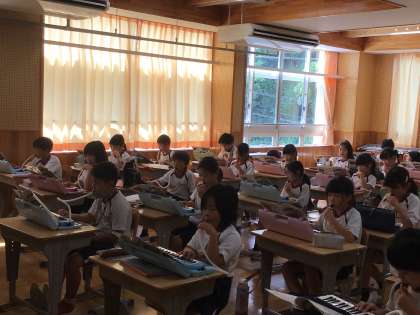 3年生の音楽の授業です。鍵盤ハーモニカとリコーダーのそれぞれのパートを練習していました。
