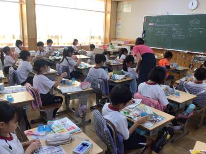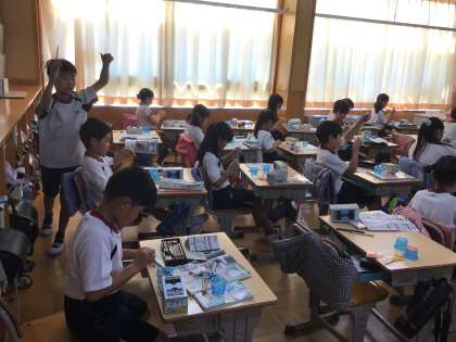 3年生の理科の授業です。音を出した時の震え方を調べるための実験の準備をしていました。