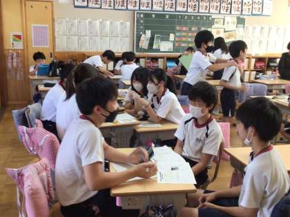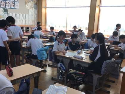 来週の修学旅行に向けた、グループの話し合いの様子です。楽しそうにグループの目当てを決めていました。