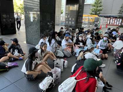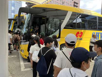 タクシー研修から戻ってきた子どもたち。予定通り京都駅を出発しました。