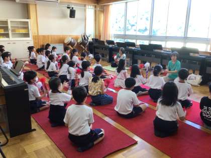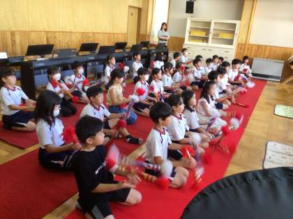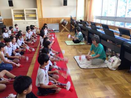 10/1 銭太鼓 3年生 公開日 2024/10/01 更新日 2024/10/01 各学年から 3年生の音楽の授業です。地域のお囃子を知る学習で、銭太鼓を体験しました。銭太鼓クラブの講師の方をお招きし、教えていただきました。子どもたちは集中して話を聞き、真似をしてやっていました。講師の皆様、ありがとうございました。 地域学校共働本部