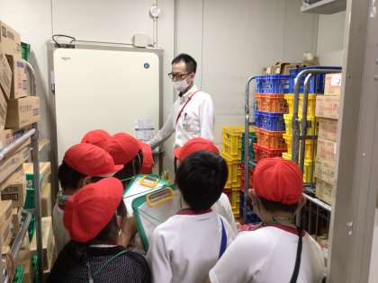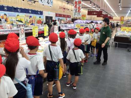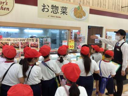 3年生が社会科の学習で、バロー浄水店の見学に出かけました。売り場を案内していただいたり、バックヤードや冷凍室などを見せていただいたりしました。