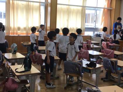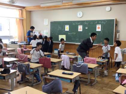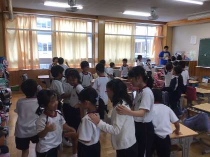 10/4 英語でじゃんけん 2年生 公開日 2024/10/04 更新日 2024/10/04 各学年から 2年生の英語に親しむ活動です。ALTのジェスチャーを交えた説明を聞いて、ゲームが始まりました。英語で挨拶をしたり、じゃんけんをしたりするゲームです。急いで相手を見つけてじゃんけんをしていました。 2年