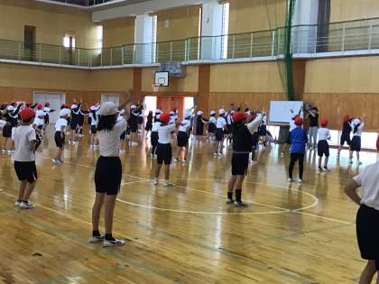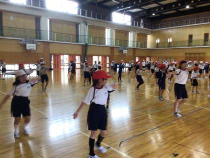 10/9 ダンス 4年生 公開日 2024/10/09 更新日 2024/10/09 各学年から 4年生の運動会の練習の様子です。雨や運動場のコンディションの関係で、外でできなかったので、体育館で練習していました。説明を聞いて、すぐに動いていました。 4年