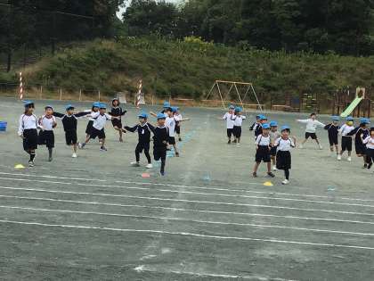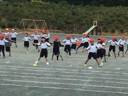 1年生の運動会の練習の様子です。玉入れの前に少しダンスを踊ります。