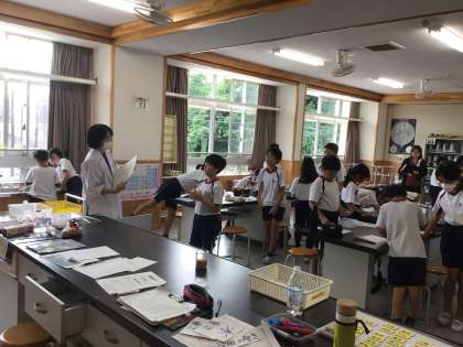 10/16 水溶液の重さ 5年生 公開日 2024/10/16 更新日 2024/10/16 各学年から 5年生の理科の授業です。物を溶かした後の水溶液の重さについて、予想を立て、実験で調べていました。 5年