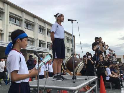 やる気に満ちた開会式です。気合いの入った誓いの言葉、全校で歌った運動会の歌、素晴らしい景色でした。