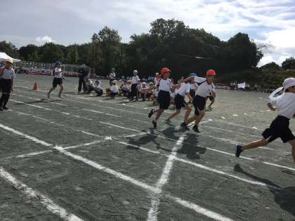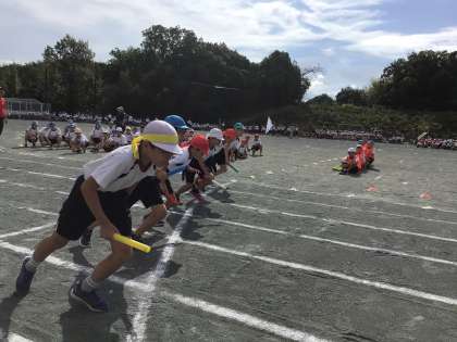 5年生の「日進月歩全力リレー」です。最後まで全力で走りました。バトンパスも練習してきました。