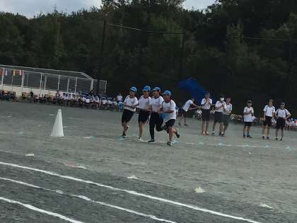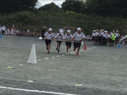 10/19 運動会 競遊 5年生 公開日 2024/10/19 更新日 2024/10/19 学校行事 5年生の競遊「上昇気流で気分上々!回れ黄金の風」です。棒を勢いよく運んだり、飛び越したり。迫力のある競技です。 5年 行事