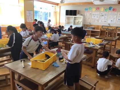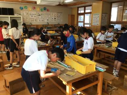 10/22 ギコギコトントン 4年生 公開日 2024/10/22 更新日 2024/10/22 各学年から 4年生の図工の授業です。ノコギリや金槌を使って、木材を加工し、自分の作りたい物を作り始めました。 4年