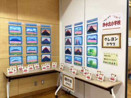 浄水北小学校は、クレヨンクラブと和紙ちぎり絵クラブの作品展示をしました。