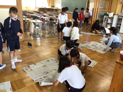 10/31 1平方メートル 4年生 公開日 2024/10/31 更新日 2024/10/31 各学年から 4年生の算数の授業です。1平方メートルの大きさを体感できるように、実際に新聞紙で作っていました。 4年