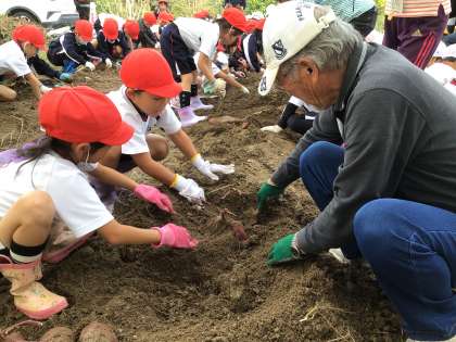 10/31 芋掘り 1年生 公開日 2024/11/01 更新日 2024/11/01 各学年から 1年生が植えたサツマイモ。収穫の時を迎えました。畑ボランティアの方々に教えていただいて、芋掘りをしました。 1年