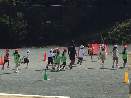 豊田市と名古屋グランパスが協力して実施しているサッカー教室「グランパスボールクリニック」が行われました。プロのコーチにサッカーボールを上手に蹴ったり、ドリブルしたりするコツを教えていただき、サッカーを通して運動することの楽しさを味わいました。