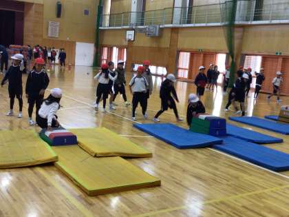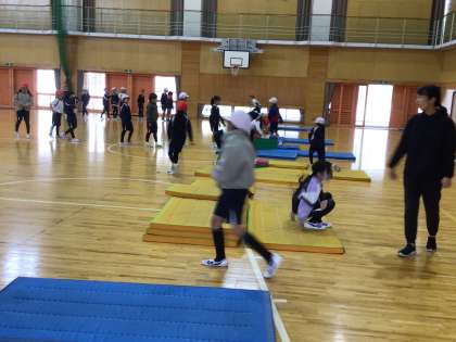 11/8 台上前転 3年生 公開日 2024/11/08 更新日 2024/11/08 各学年から 3年生の体育の授業です。台上前転の練習をしていました。マットの上での前転練習から、徐々に段差を高くして練習ができるよう場を設定し、子どもたちが自分で選んで練習していました。 3年