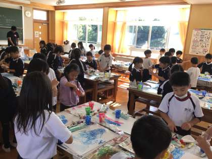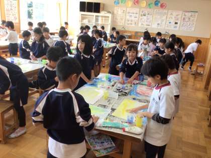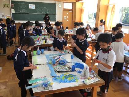 11/19 ぐにゅぐにゅ 2年生 公開日 2024/11/19 更新日 2024/11/19 各学年から 2年生の図工の授業です。ゆるい紙粘土に絵の具を混ぜて、「◯◯な気持ち」を表現していました。手で混ぜて塗っていく活動で、ぐにゅぐにゅした感じを「気持ちいい〜」と味わっていました。 2年