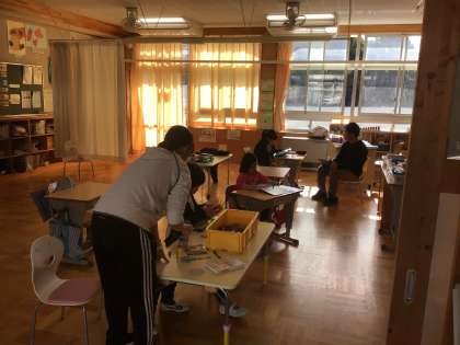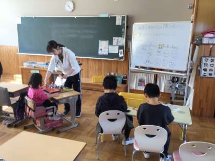 おひさま組、にこにこ組、ひだまり組の個別学習の様子です。個々のめあてを確認し、個別に支援しています。