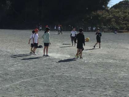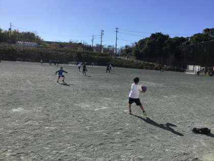 なかよしタイムの様子です。気持ちの良い青空の下、外で遊んでいる子が増えています。一緒に遊ぶ先生の姿もありました。