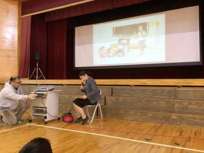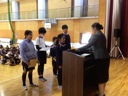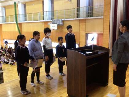 今日の全校集会では、人権についての読み聞かせを校長が行いました。「ぼくはなきました」(くすのき しげのり作)を読み、自分や人のよいところを見ようとすることは、自分や人を大事にすることにつながるという話をしました。