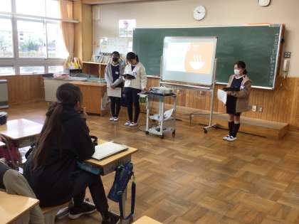 5年生の総合的な学習の時間です。まごころ発表会の発表をグループごとに行い、最後の仕上げをしていました。
