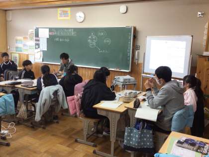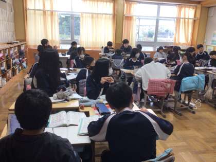 6年生の算数「比例」の学習です。2つの数量の関係をグループ分けしていました。
