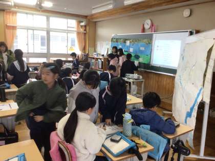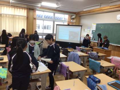 4年生の総合的な学習の時間です。本番を前にグループごとに練習をしていました。