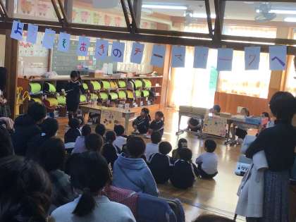 11/27 まごころ発表会 1年生 公開日 2024/11/27 更新日 2024/11/27 各学年から 1年生のテーマは「ようこそ!あきのテーマパークへ」。まごころの森で見つけた秋の「すてき」を使って作った物を紹介したり、一緒に遊んだりしました。 1年