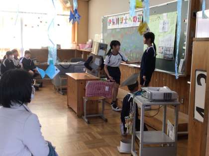 11/27 まごころ発表会 4年生 公開日 2024/11/27 更新日 2024/11/27 学校行事 4年生のテーマは「伊保川博士への道」。伊保川で遊んだり生き物探しをした中から自分のテーマを決め、取り組んできました。現地で調査したり本で調べたりしたことを発表しました。 4年 行事
