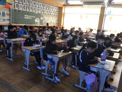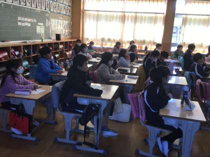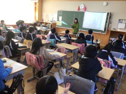 4年生の国語の授業です。人権週間の取り組みの一つとして、人権標語コンクールに応募します。昨年度の優秀作品を子どもたちに紹介してから考えるようにしていました。人権について考える機会になると思います。