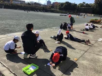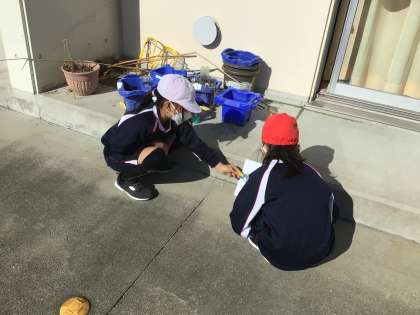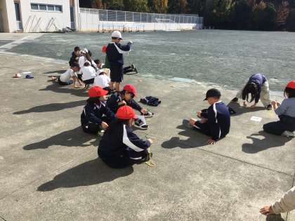 3年生の理科の授業です。虫眼鏡で紙に日光を集める実験を行っていました。