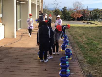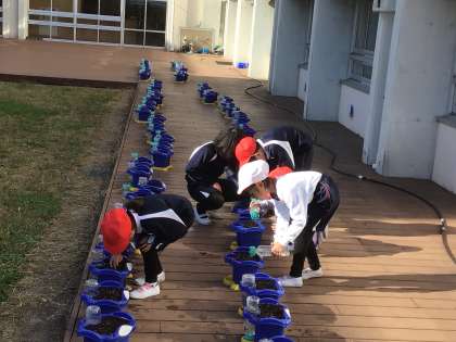 1年生が植木鉢に水をやっていました。「昨日、チューリップの球根を植えたんだよ。」と教えてくれました。いつ芽が出るかなと楽しみにお世話をしていきます。