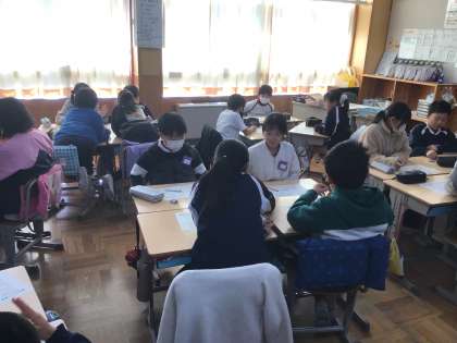 12/5 豊田市子ども条例 5年生 公開日 2024/12/05 更新日 2024/12/05 各学年から 豊田市には、子どもの人権を守るための「子ども条例」があります。市の動画を使いながら、豊田市子ども条例について学んでいました。たくさんある権利の中から、自分が特に大事だと思うものを選び、なぜそう思うのか、グループで共有しました。 5年
