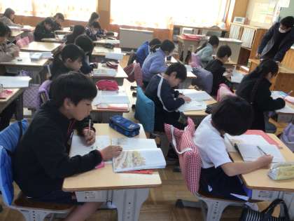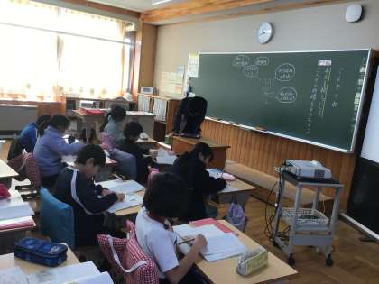 4年生の国語の授業です。主人公のごん人物像を考えるために、物語の言葉を手がかりに、一人調べをしていました。