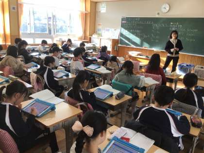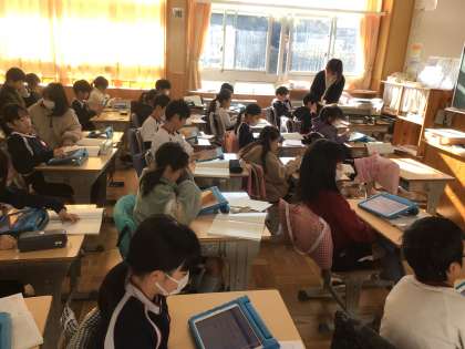 3年生の国語の授業です。ローマ字の練習をしていました。のばす音やつまる音の表し方に気をつけて入力しました。
