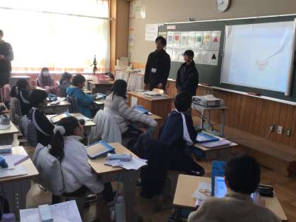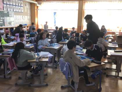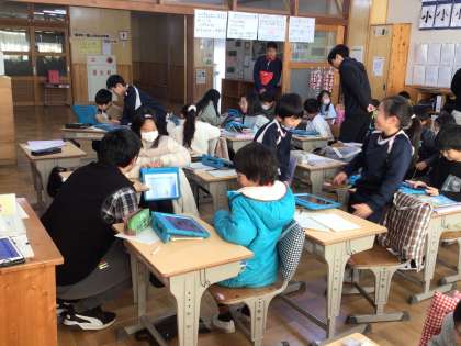 3年生の外国語活動の授業です。カードを作り、どの色のどの形を何枚使った、ということを英語を使って伝え合いました。